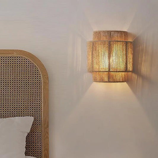 Vintage Handwoven Rattan Wall Lamp – E27 Hemp Rope Sconce